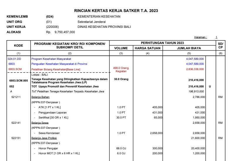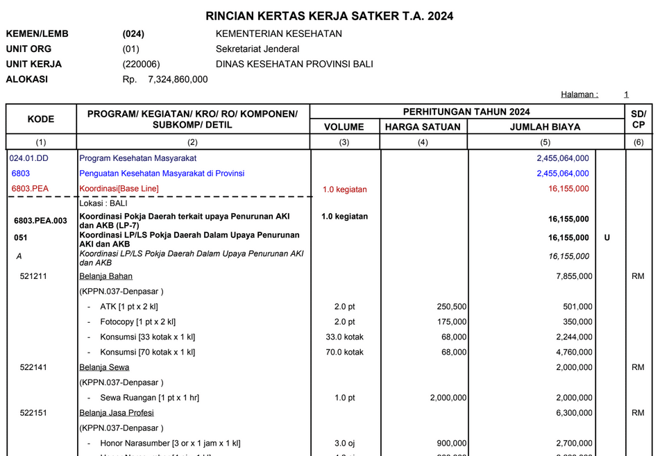 RKAKL Berisi Informasi tentang rincian rencana kerja keuangan di Dinas Kesehatan Provinsi Bali yang bersumber dari Anggaran Pendapatan Belanja Negara